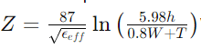 - h is the height from trace to ground plane (usually the thickness of the dielectric layer).